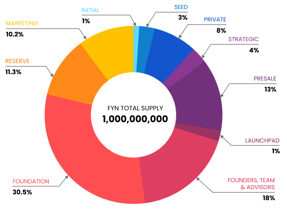 **归属：**&#x6BCF;年解锁 50,000,000 $FYN，连续 10 年，从2025 年 3 月 13 日开始。&#x20;