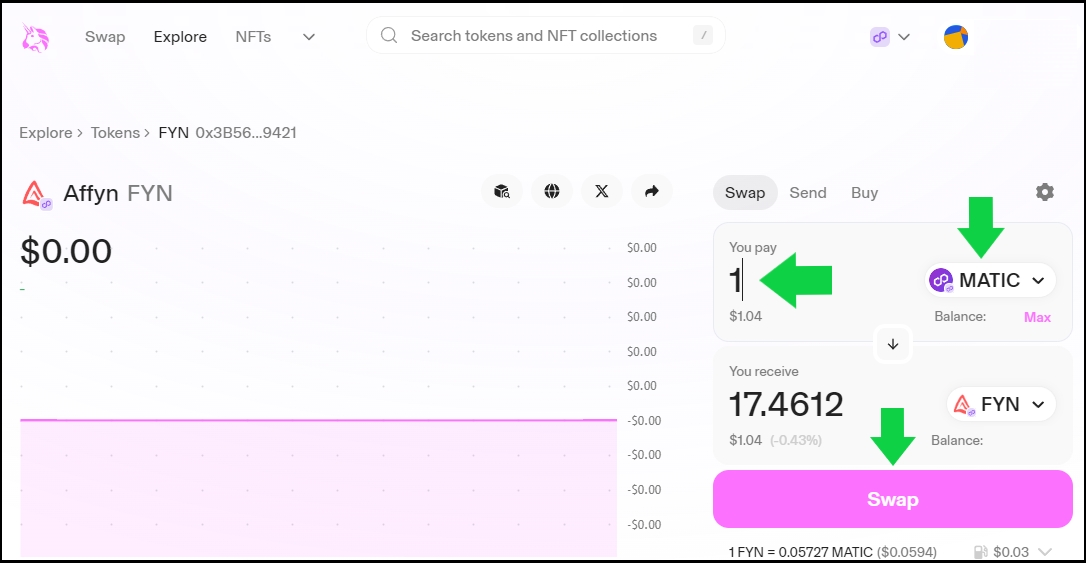 第 1 步:前往https://app.uniswap.org/explore/tokens/polygon/0x3b56a704c01d650147ade2b8cee594066b3f9421