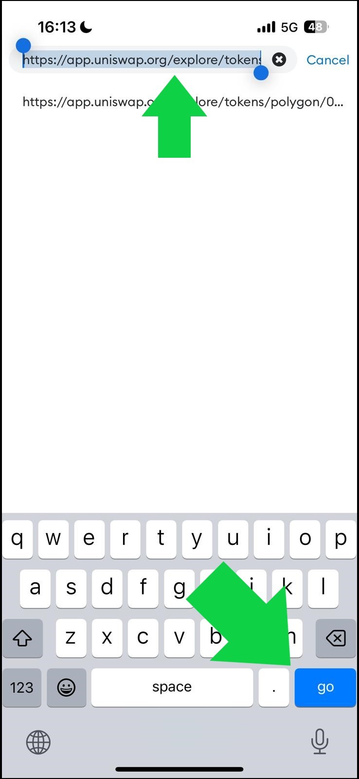 第 3 步:粘贴以下 URL: https://app.uniswap.org/explore/tokens/polygon/0x3b56a704c01d650147ade2b8cee594066b3f9421 ,然后选择 go