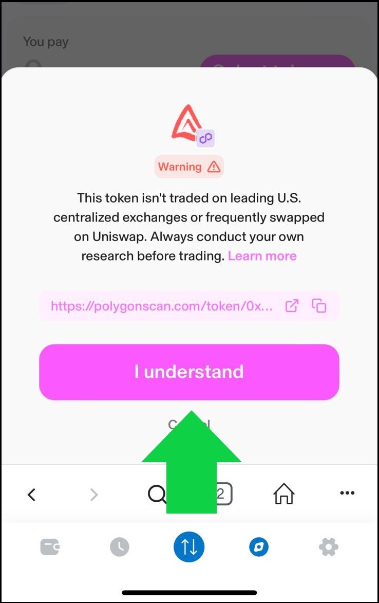 第 5 步:选择 Swap,阅读并确认屏幕上的信息然后选择 I understand