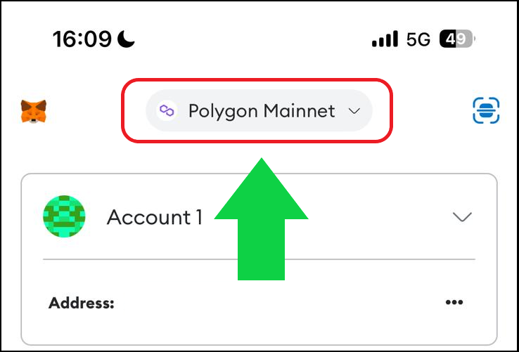 第 1 步:在您的移动设备上打开 MetaMask 应用程序。确保您已连接到 Polygon 网络。如果您在设置 Polygon 时需要帮助,可以参考本指南。