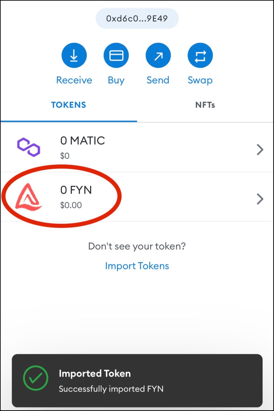 第 5 步:恭喜!您已成功设置 MetaMask 钱包。您的 $FYN 余额将显示在此处。