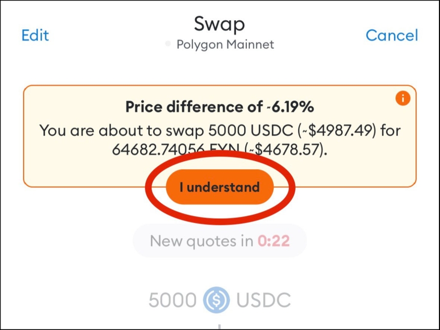 第 8 步:使用数字输入面板输入您想要兑换为 FYN 的代币数量。在此示例中,我们将使用 5000 USDC