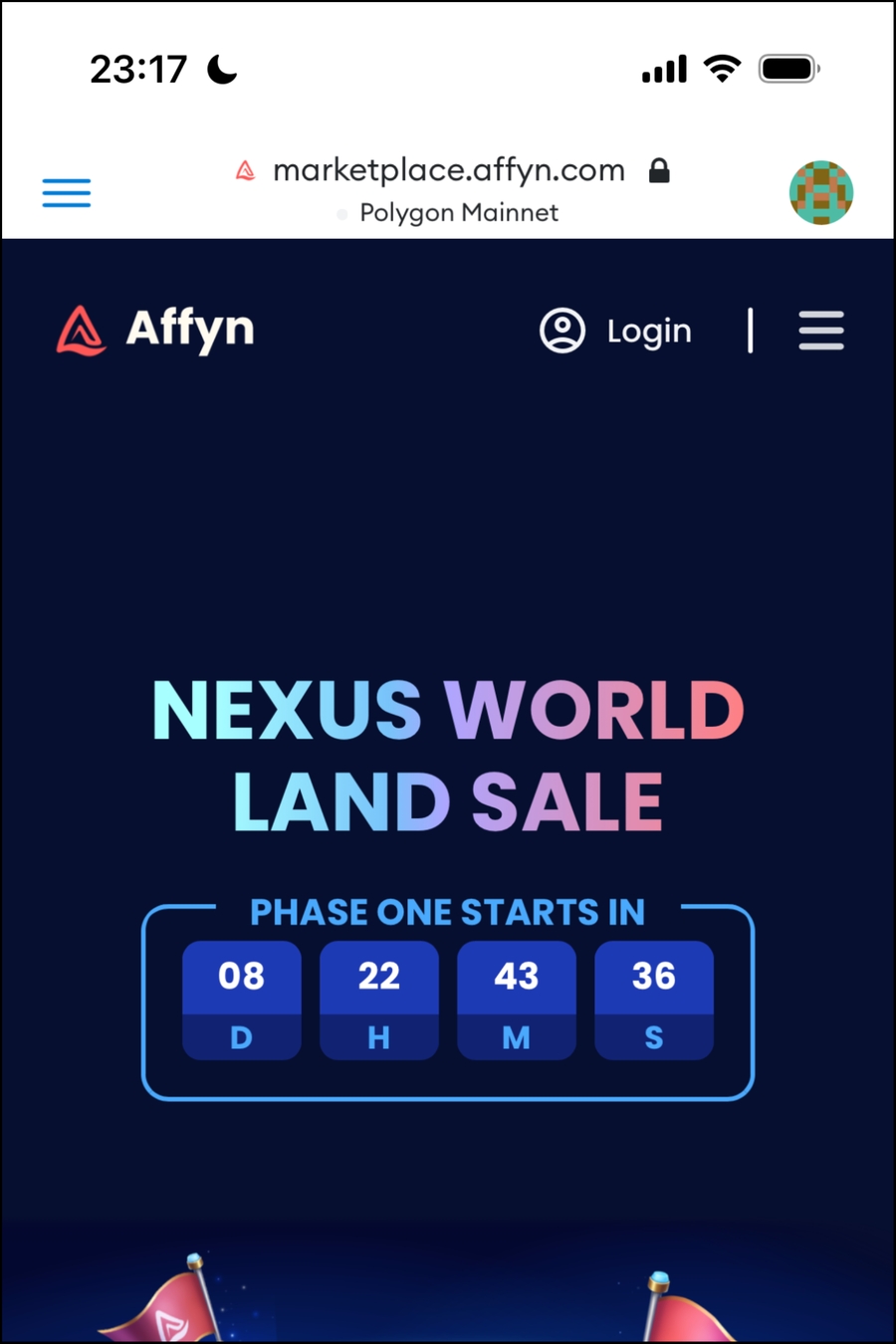 第 6 步:恭喜!您已使用移动设备 MetaMask 应用内浏览器成功到达 Affyn Marketplace。