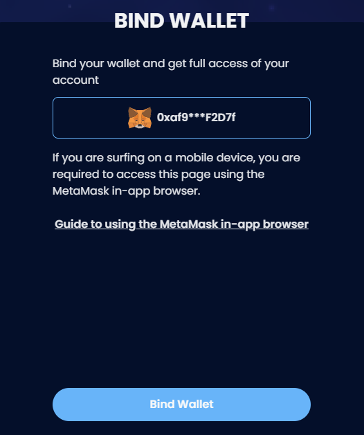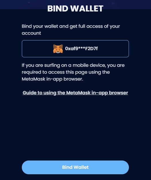 第 8 步:您的钱包现已连接。选择 Bind Wallet