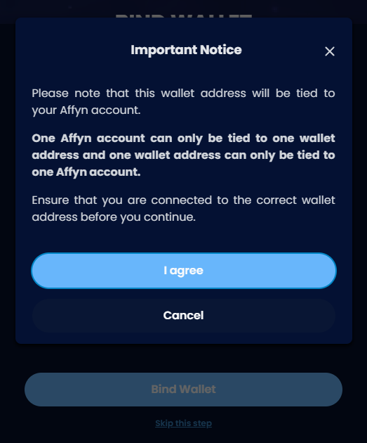 第 10 步:恭喜!您已成功将 MetaMask 钱包绑定到您的 Affyn 账户