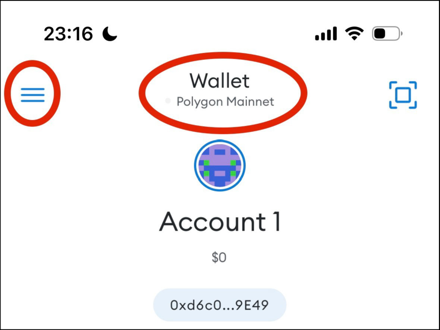 第 1 步:打开手机上的 MetaMask 应用程序。对于桌面用户,请跳至步骤 3。检查您是否已连接到 Polygon Mainnet. 选择左上角的 菜单 图标
