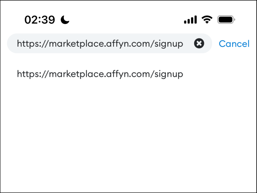 第 3 步:访问 https://marketplace.affyn.com/signup