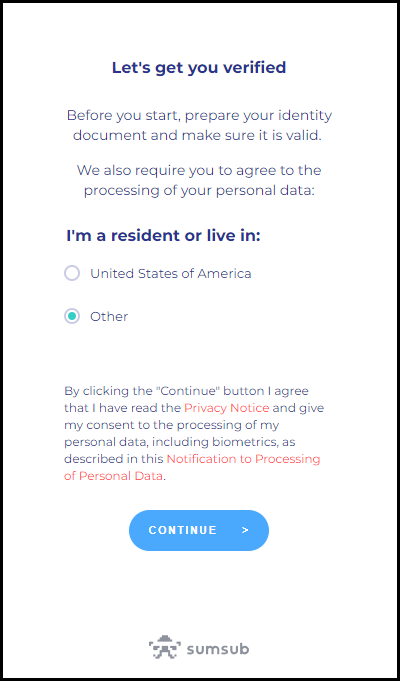 第 6 步:选择文件的签发国家/地区。从接受的文件列表中选择一个选项。这是您将提交用于 KYC 检查的文件。