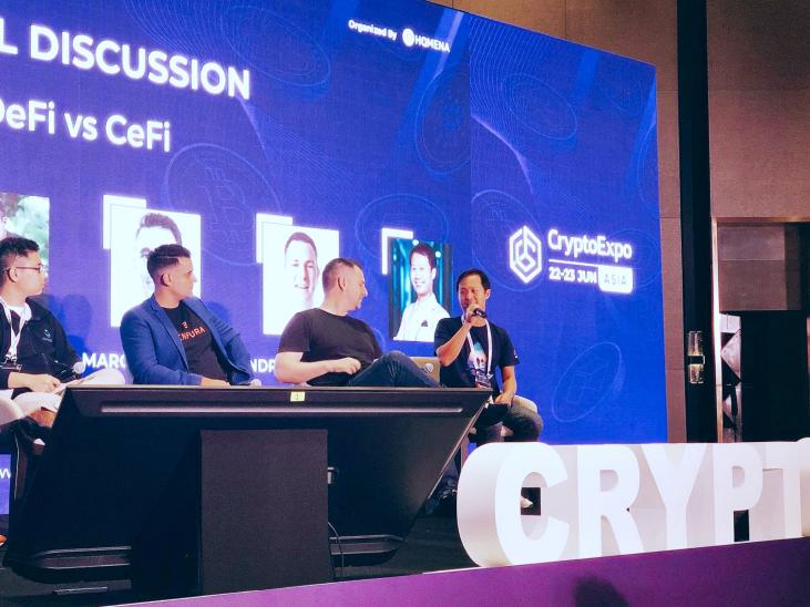 Lucaz 是受邀上台讨论 DeFi 与 CeFi 主题的小组发言人之一。