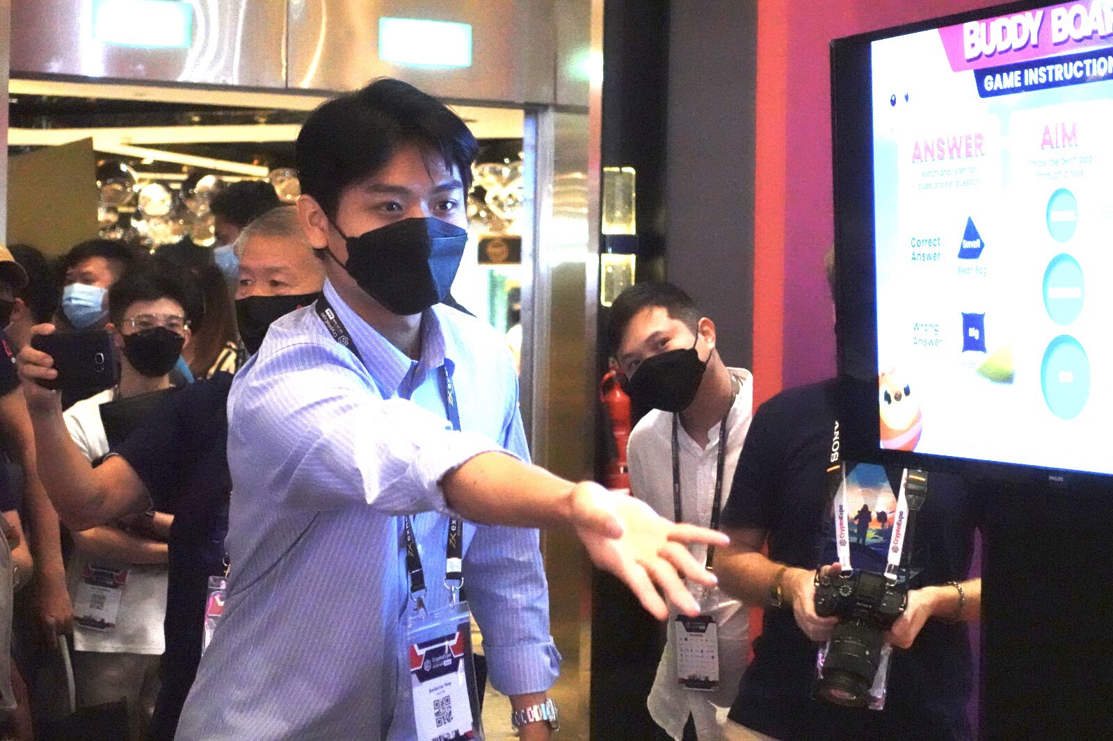 我们在展位上举办了 "Buddy Board" 游戏,大受欢迎,排起了长队。
