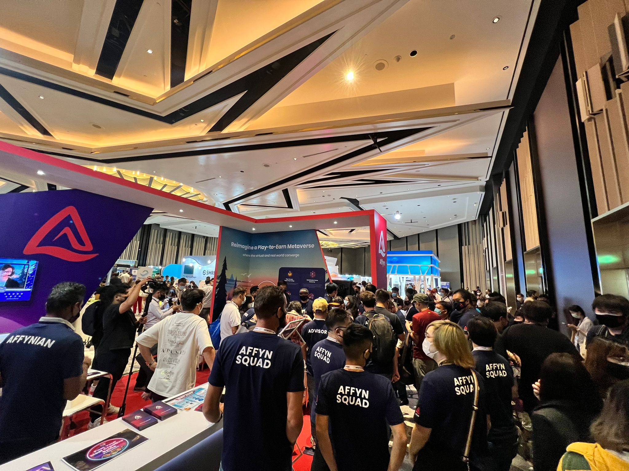我们在 Crypto Expo Asia, 2022 年亚洲加密货币博览会上设立了一个展位,向聚集在活动大厅的数千名与会者展示了 Affyn 项目。